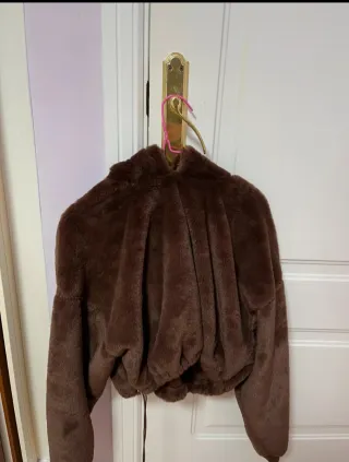 Chaqueta corta de pelo sintético en color marrón. Tiene un diseño moderno y es muy suave al tacto. - Mangas largas. - Bajo ajustable con cordón. - Cierre de cremallera.