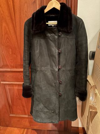 Elegante abrigo de piel vuelta de vacuno con un suave interior de pelo ecológico. - Diseño clásico. - Cierre de botones. - Detalle de pelo en cuello y puños.