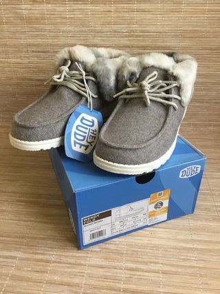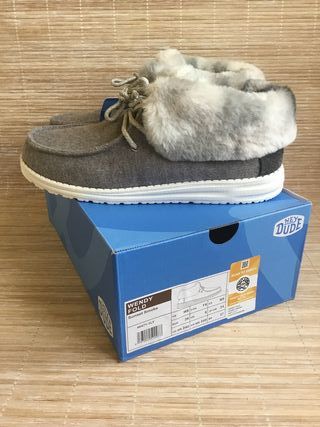 SOLO ENVÍOS (GLS no) Botines de algodón color gris y forro de piel sintética, con cordones y plantilla extraíble de espuma viscoelástica. Suela EVA, ligera y flexible. Muy cómodos, no pesan y abrigan. Se pueden lavar. Marca HEY DUDE, modelo WENDY FOLD. Talla 39. Precio en tienda 79,99 €. NO HAGO FOTOS PUESTO. #calzadocofega #calzado39cofega #botas #botines #algodon #piel #sintetica #pelo #gris #cordones #goma #antideslizante #dude #heydude #talla39