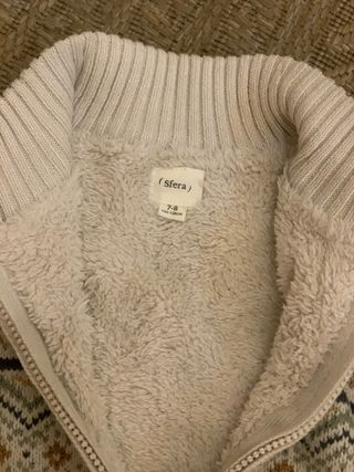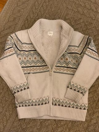 Chaqueta de punto para niño con un bonito estampado fair isle. El forro interior es de pelo suave para mayor calidez. - Cierre de cremallera. - Cuello elástico - Puños y bajo de canalé.