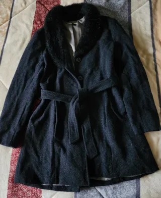 Elegante abrigo de lana para mujer, perfecto para el frío. Medidas: largo de hombro a bajo 102cm, sisa a sisa 55 cm. - Forro interior en perfecto estado. - Cuello de pelo sintético extraíble. - Cierre de botones. - Bolsillos laterales. - Puños con botones.