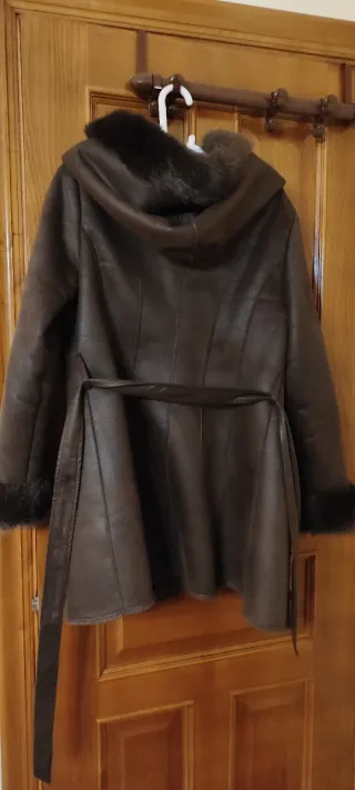 Abrigo ante marrón con capucha