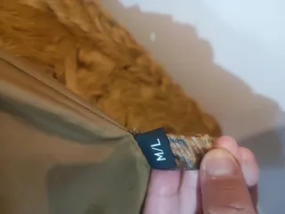 Abrigo de tacto suave y diseño moderno. - Material exterior de pelo sintético. - Cierre de cremallera. - Bolsillos laterales. Es una talla L, pero talla pequeño sería una M