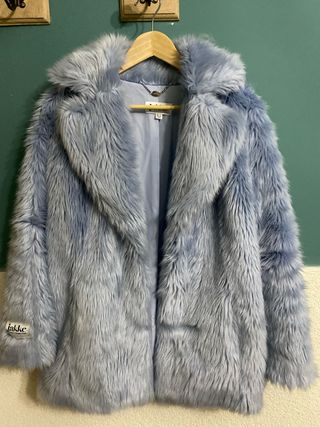 Abrigo de pelo sintético en color azul, con un diseño moderno y llamativo. - Tacto muy suave y agradable. - Corte amplio y confortable. - Cierre frontal. Se lava perfectamente en lavadora