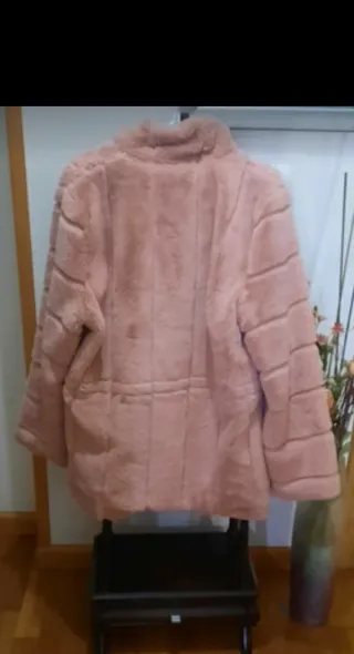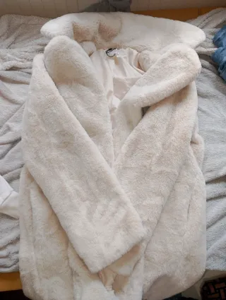 Abrigo de pelo suave con capucha. Tiene un cordón ajustable en la cintura para un mejor ajuste. - Bolsillos delanteros. - Cierre de cremallera Es talla S pero es oversize.