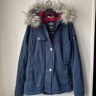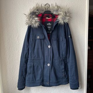 Abrigo en color azul de la marca Hollister Talla M - Capucha con pelo sintético. Forro interior a cuadros. Cierre de botones. Bolsillos frontales con solapa. En perfecto estado ✨✨ ℹ️ Pásate por mi perfil, cositas desde 1€ 🔝 Descuento comprando más de dos artículos 🔝 ⚠️ Urge venta por mudanza ⚠️