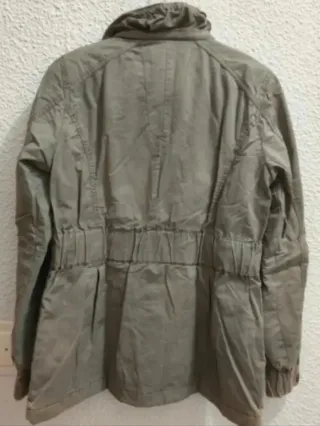 NUEVO Es corto, de colorl claro, dispone de bolsillos laterales ocultos en costura y cierre frontal de cremallera, tiene capucha ajustable y gopa para adaptarse en la cintura.