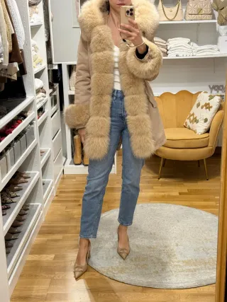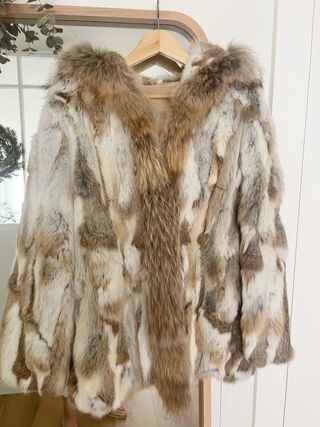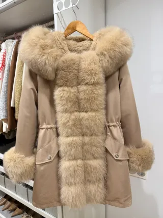 Talla S Pelo natural conejo en cuerpo y pelo zorro en todo el borde de la capucha.