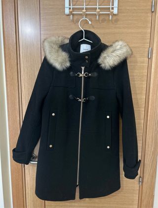 Abrigo Zara negro con capucha de pelo