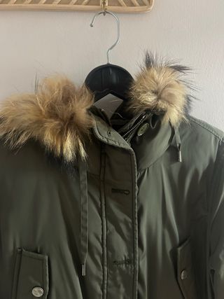 Parka verde militar con capucha y pelo