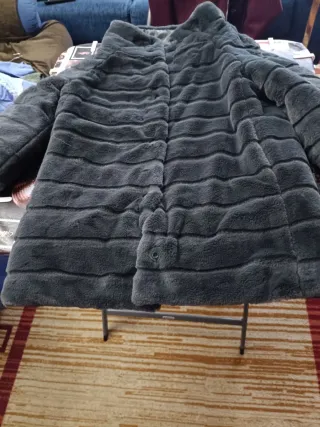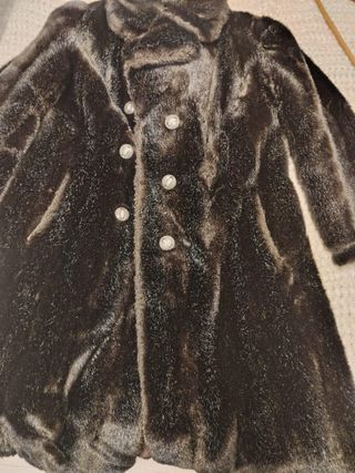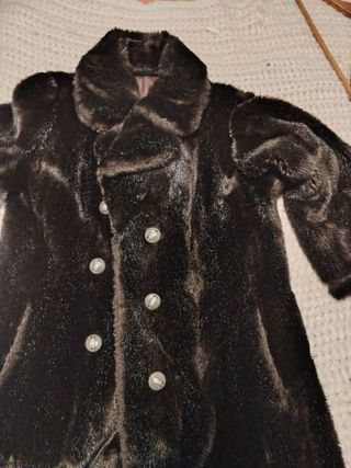 Precioso abrigo de pelo talla 42-44, en perfecto estado y casi sin uso. Es una prenda elegante y cálida. - Material: Pelo sintético. - Diseño: Abrigo largo con cuello. - Cierre: Botones frontales.