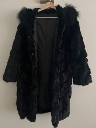 Abrigo Pelo Natural Conejo y Zorro Negro