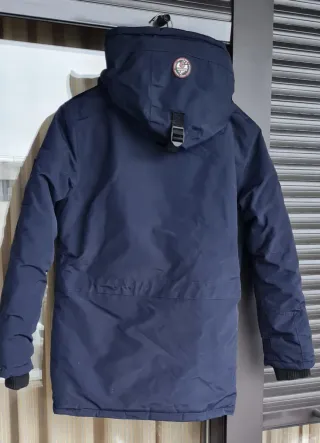 Parka de invierno con capucha. - Cierre de cremallera y botones. - Bolsillos frontales con cremallera. - Detalle de logo en manga.