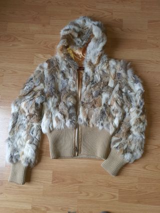 Chaquetón pelo conejo marrón y blanco talla S/M