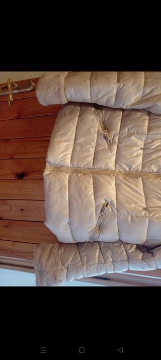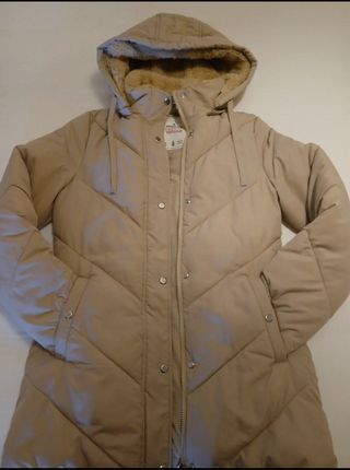 Parka beig de Stradivarius,talla S con capucha y cuello de pelo,casi nueva.