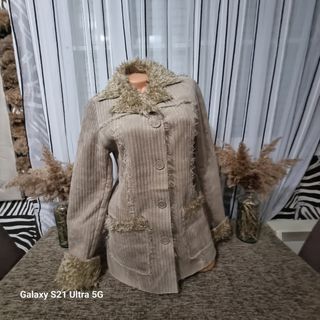 Elegante chaquetón estilo cazadora, perfecto para abrigarse con estilo. Lleva pelo por dentro puede dar una talla 42-44, queda por debajo de la cadera SE HACEN LOTES PARA AHORRAR EN EL ENVÍO - Diseño con cuello y puños de pelo. - Cierre de botones. - Bolsillos delanteros.