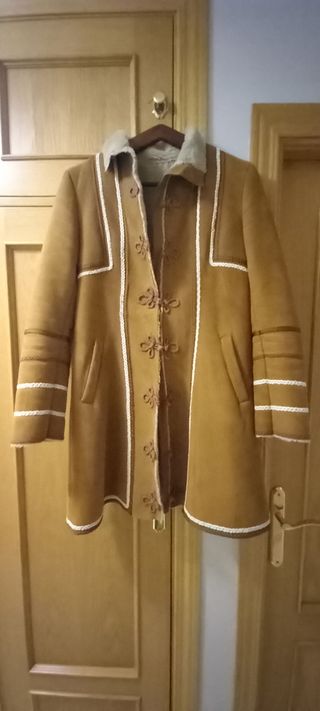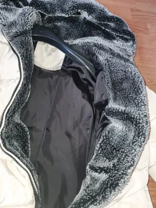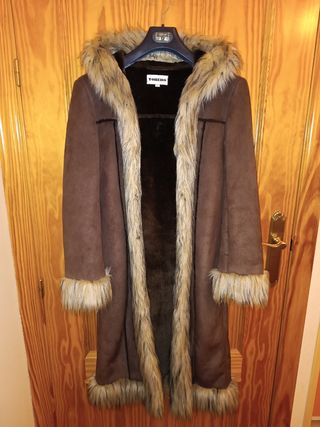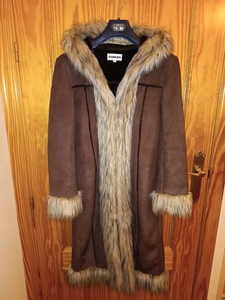 Abrigo forrado de pelo entero, con bolsillos y capucha. Muy calentito, está nuevo.