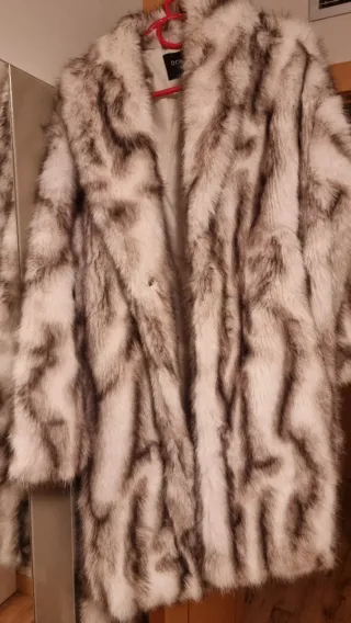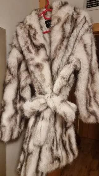 Abrigo de pelo sintético con un diseño llamativo. - Muy abrigado - Como nuevo. 1 uso - Tacto suave y mullido. - Corte moderno y favorecedor.