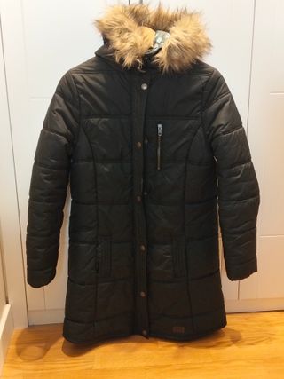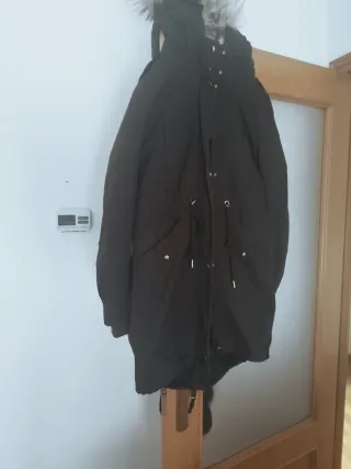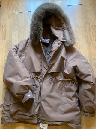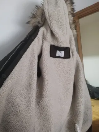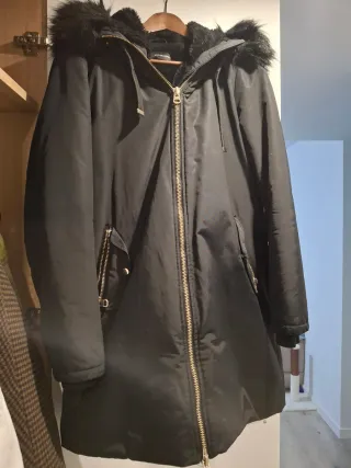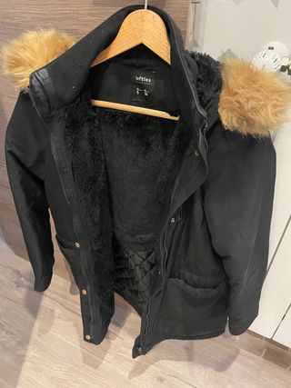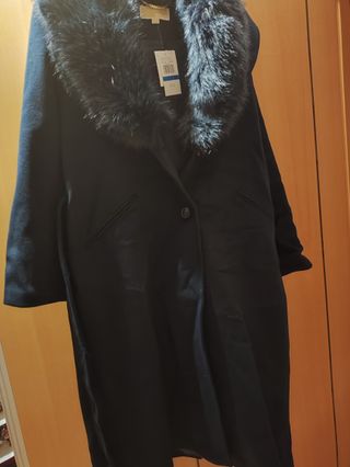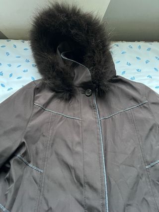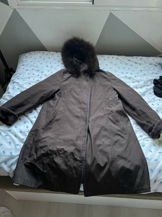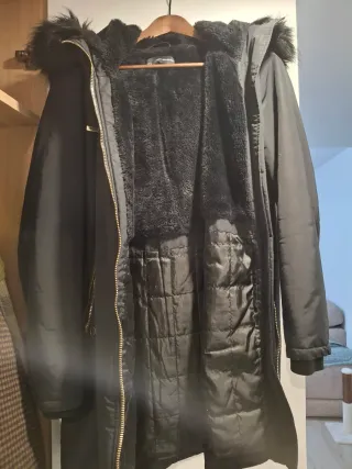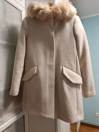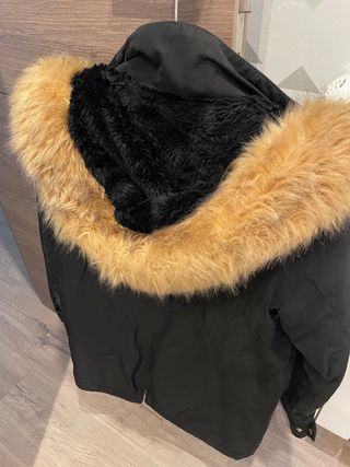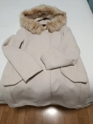 Abrigo de paño con capucha de pelo sintético. - Cierre de botones. - Bolsillos delanteros. Solo lo he usado una vez aunque suene tópico. Pero es real