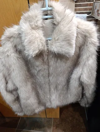 Abrigo de pelo sintético para mujer, con un diseño moderno y cálido. - Material: Pelo sintético. - Cierre de cremallera. - Capucha integrada. - Muy poco uso.