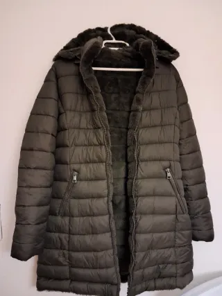 Abrigo de Lefties con un diseño moderno y cálido. - Forro interior de pelo sintético. - Capucha con detalle de pelo. - Cierre de cremallera y botones. - Bolsillos frontales.