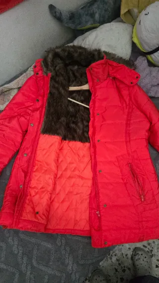 Abrigo rojo con forro de pelo