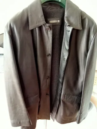 Se trata de cazadora de piel marrón, talla 54, usada.