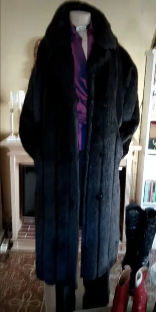 Impresionante abrigo largo de pelo sintético de alta calidad, completamente nuevo Es una pieza de gran formato fabricada en Inglaterra, con un acabado extremadamente suave y un brillo que emula a la perfección la piel natural.Lo más destacable es su gran longitud y porte: en una persona de 1,73m de altura, el abrigo llega prácticamente hasta debajode la pantorrilla, lo que lo convierte en una prenda envolvente, muy abrigada y con una caída espectacular. Además, se ha personalizado para aumentar su valor con botones tipo azabache de gran calidad, pesados y con un brillo elegante, que sustituyen a los originales de plástico.........
