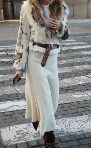 Abrigo de piel natural – estilo fashion Espectacular abrigo de piel natural en tonos blanco, beige y marrón, con un diseño único y muy elegante. Modelo con cinturón de cuero, detalles artesanales y cuello voluminoso que aporta un look lujoso y sofisticado. Perfecto para outfits de invierno con personalidad: urbano, chic o boho-luxury. Talla: Apto para XS – S Características: • Piel natural • Diseño exclusivo • Cinturón de cuero • Corte favorecedor • Muy cálido y estiloso Estado: muy bueno. - Estilo fashion. - Combinación de tonos beige y marrón.
