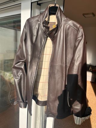 Cazadora unisex de piel marrón.