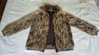 Abrigo color camel talla 44. Es muy gustoso y esta en perfecto estado. Realmente parece de piel vuelta.