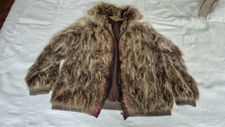 Chaqueta de piel y ante, en buen estado. Exterior pelo 100% poliester 80% Modacrilica 20% Acrilíco