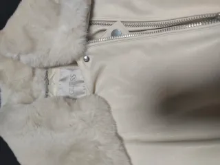Elegante chaqueta de Guess con un diseño moderno y detalles que la hacen única. - Material principal: piel. - Color: beige y blanco. - Cuello con acabado de pelo sintético. - Cierre frontal de cremallera. - Bolsillos laterales con cremallera.