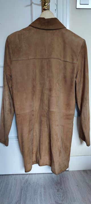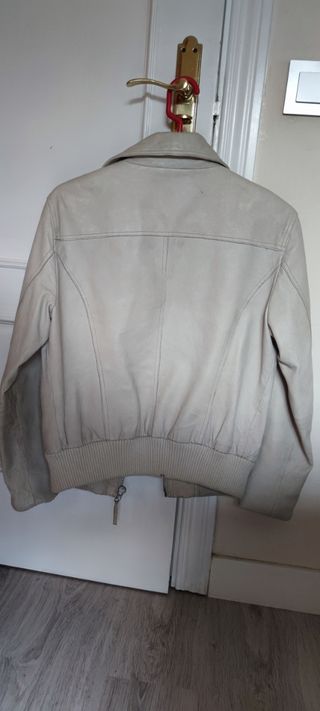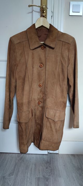 chaqueta de piel de ante. super suave. Es la típica chaqueta clásica que no pasa de moda. Tiene años pero es tan buena que sigue impecable de su buena calidad.