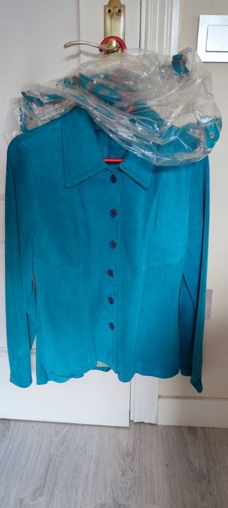 De los años 80. Talla M. Con dos botones. Parece piel real, da el pego totalmente y encima lo puedes meter en la lavadora.