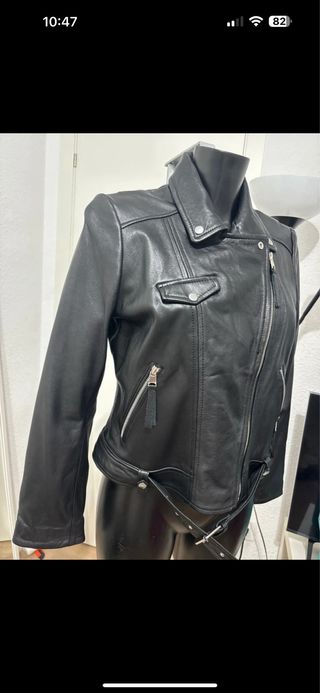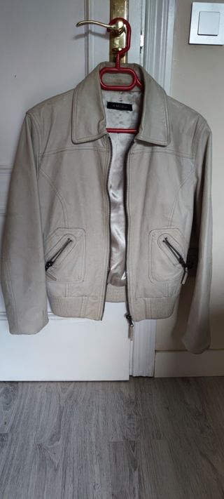 cazadora de piel en perfecto estado para mujer en talla S, nunca usada por no poder descambiar al Pais de origen. PVP en tienda 170€.