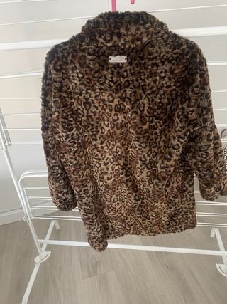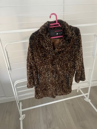 abrigo corto, por encima de la rodilla, imitación piel de animal salvaje, se abrocha con 3 corchetes y tiene 2 bolsillos a los lados con cremallera. Ed. Andy Warhol. Prrácticamente sin uso