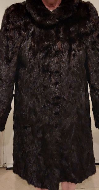 Precioso abrigo de piel de bisonte, talla XL (42/14), color marrón. Es una prenda elegante y de apariencia suave. - Talla grande, ideal para invierno. - Color marrón oscuro.