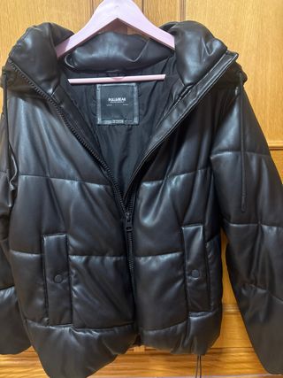 Cazadora efecto piel Bershka negra