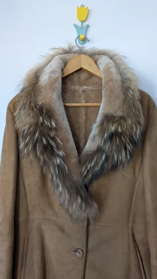 - Piel vuelta de cordero con aplicaciones de pelo natural en cuello y puños. - El cuello es de la piel suave del interior, queda precioso abierto, se cierra con un botón. Además tiene otros 2 botones y 2 corchetes. - Talla pequeño, mas bien M, comprueba medidas: Ancho hombros 45, entre sisas 48, cintura 45, largo 81. - Comprado hace +25 años en peletería, hecho en España, buena calidad. 👉En buen estado general, muy cuidado, siempre guardado en su funda. Arrugas en una esquina. NECESITA LIMPIEZA (fotos). De ahí el precio. ✅ Para más detalles no dudes en preguntar. ✅ SOLO VENTA EN PERSONA EN LEÓN, lo puedes ver sin compromiso