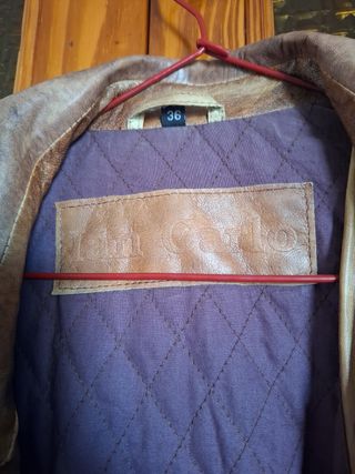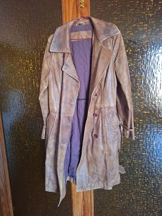 Gabardina de piel marrón,en buen estado talla 36,vendo por no irme bien la talla. Muy poco usada. Forrada por dentro.