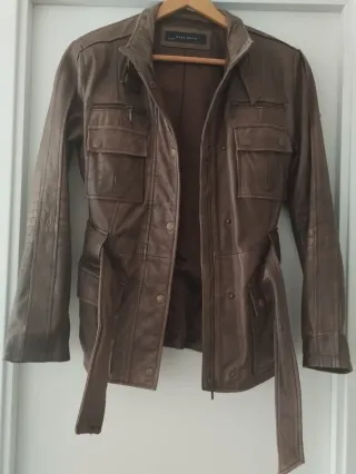 Chaqueta de Zara con un diseño moderno y elegante. - Material de piel - Color marrón intenso. - Cierre de cremallera.