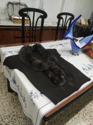 Abrigo piel, no sé exactamente de qué animal es mi madre no lo recuerda, cree que es de foca, pero no lo tiene claro