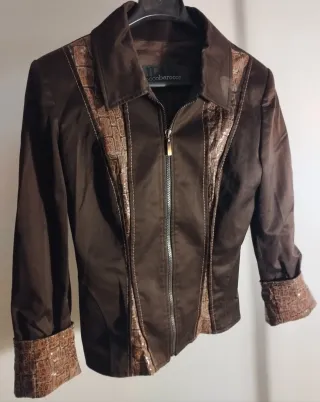 Elegante chaqueta de la marca Boccobarocco. - Diseño con detalles en piel de cocodrilo. - Cierre de cremallera frontal. - Puños y cuello con acabado especial.