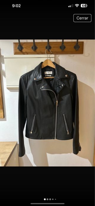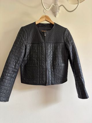 Chaquetita de piel de la firma Massimo Dutti. Talla S. En perfecto estado. El modelo es corta tipo torería. Queda espectacular. La vendo porque he cambiado de talla y no me va bien 🥲, usada dos veces. - Diseño moderno. - Cierre de cremallera frontal. - Cuello redondo.
