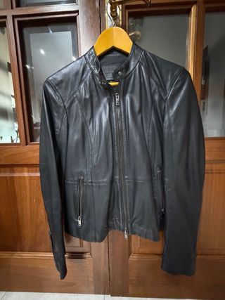 Chaqueta Piel Negra Massimo Dutti Talla M