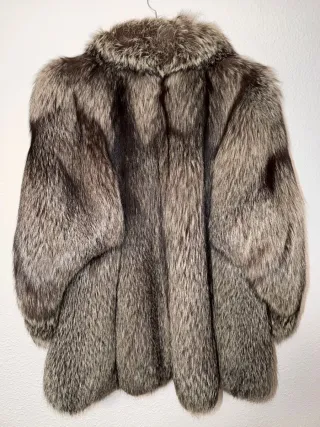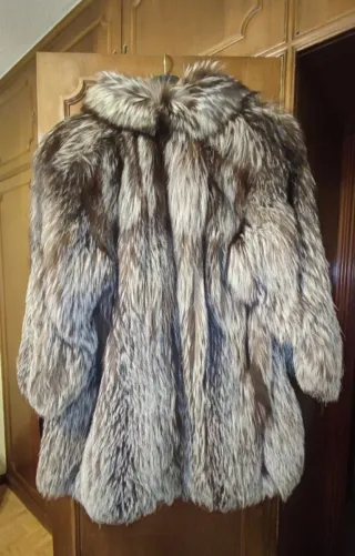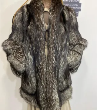 Elegante abrigo de zorro plateado, una prenda llamativa y sofisticada, en un estado impecable. El abrigo se encuentra en excelentes condiciones pues ha sido guardado en una estancia a bajas temperaturas para preservar el estado de la piel. Esta nuevo, solo se ha utilizado para una cena - Diseño original. - Mangas amplias. - Colores gris y negro predominante, beige, marrón y pinceladas de plateado. - Cierre mediante ganchos ocultos. - Dos bolsillos a los laterales. Lo vendo pq me queda grande como puede observarse en las fotos y no me lo voy a poner y es una pena, es precioso y está nuevo Se admiten ofertas sensatas.