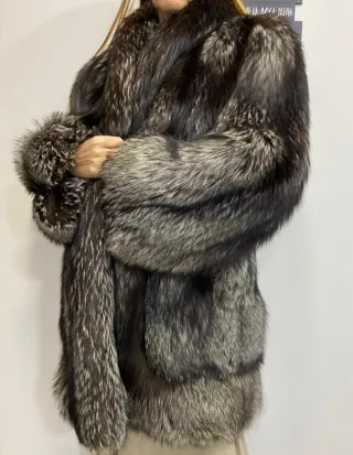 Elegante chaquetón de piel de zorro plateado. Una prenda que aporta un toque de distinción. - Piel suave y de alta calidad - Piel de zorro plateado. - Diseño clásico.