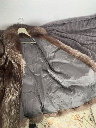 Abrigo Piel Zorro Talla L/46 Marrón y Plateado