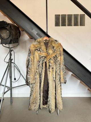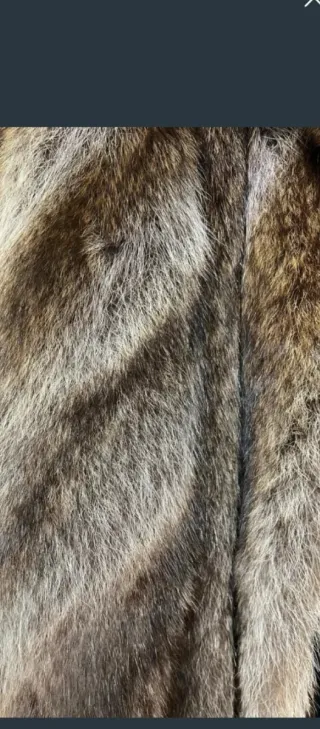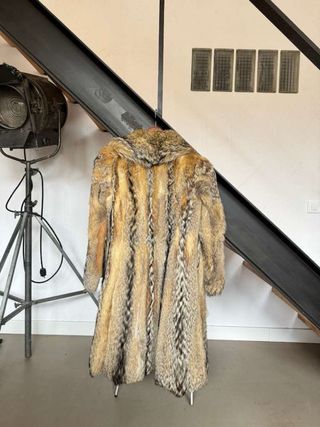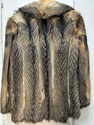 Abrigo de zorro con un diseño único y elegante. - Material: Piel de zorro. - Color: Tonos beige y marrón.